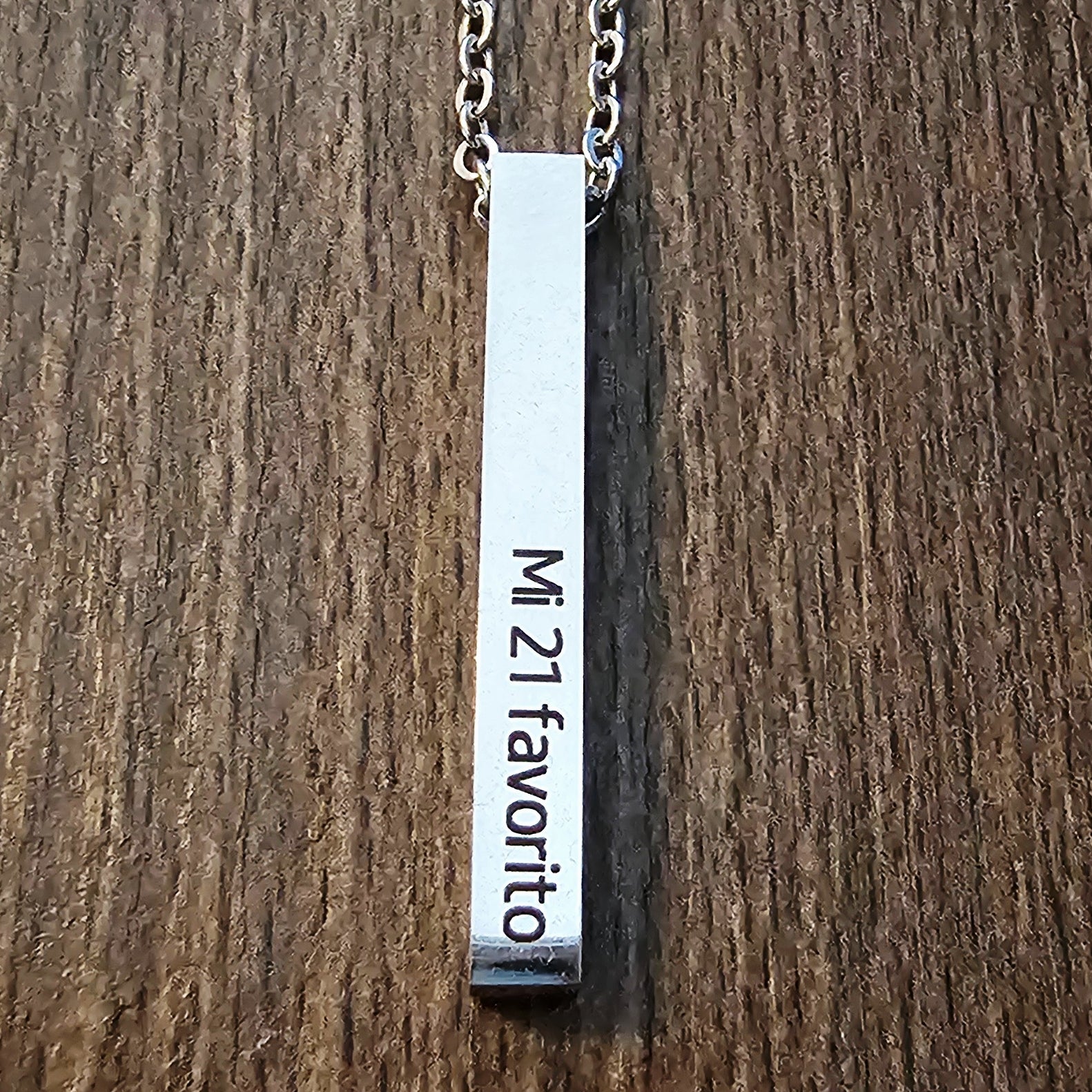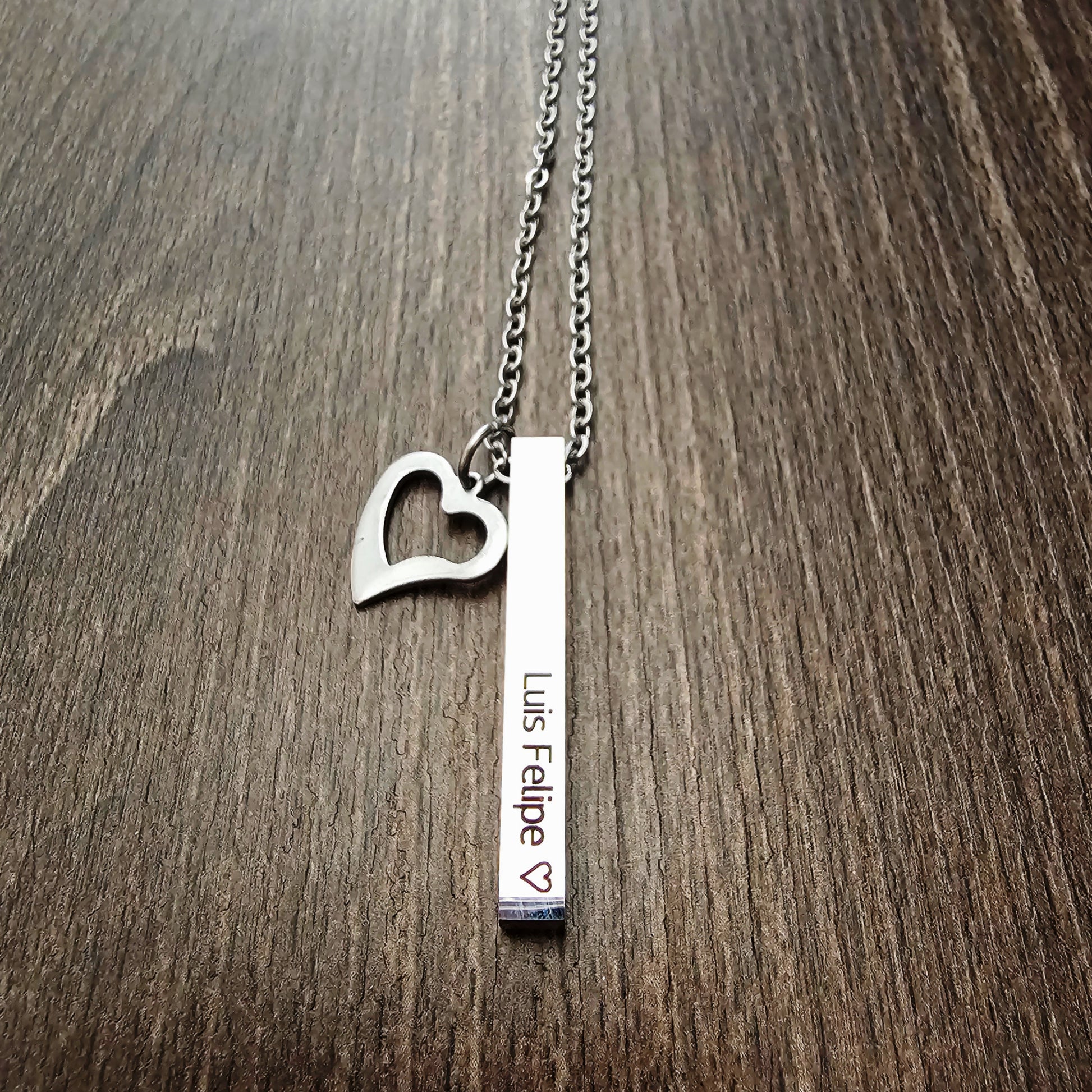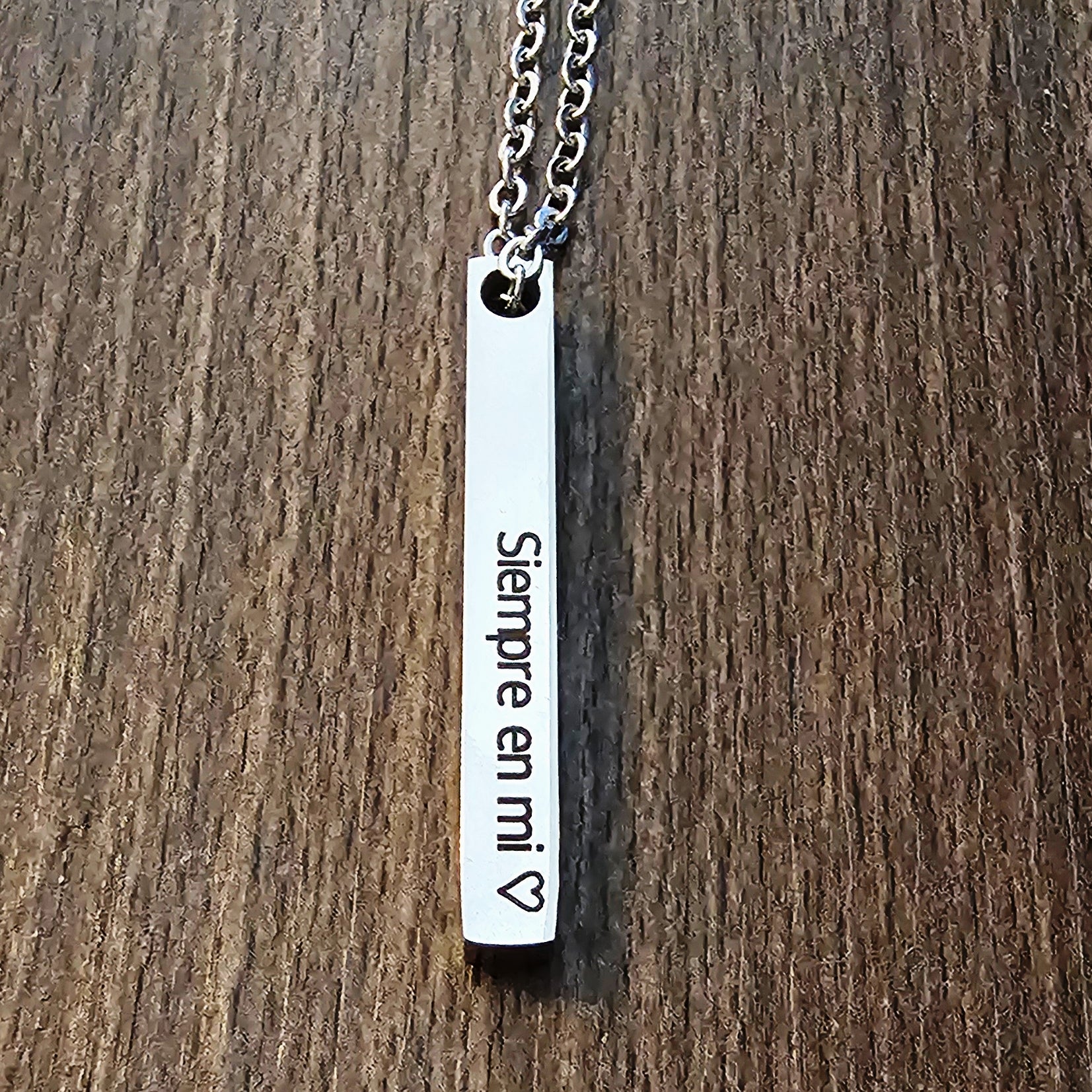 Colección Barra Amor te ofrece grabar con láser hasta 4 lados el texto que desees en una elegante joya en forma rectangular para que la lleves siempre contigo.
