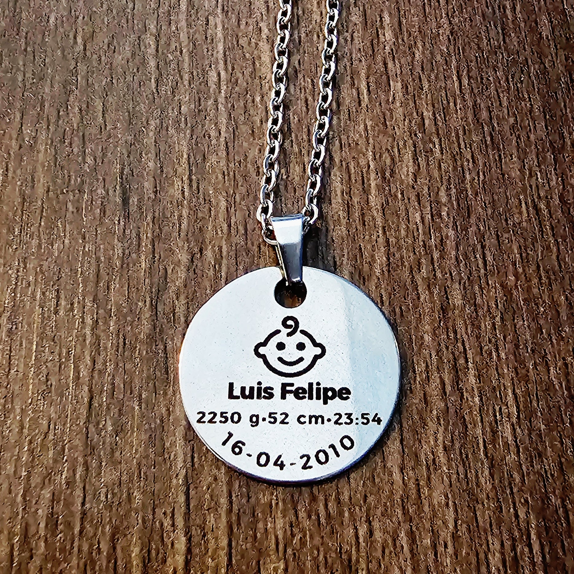 Colección Bebés Amados te ofrece grabar los datos del nacimiento de tu bebé en una joya en forma de círculo o corazón para recordar ese Momento especial.