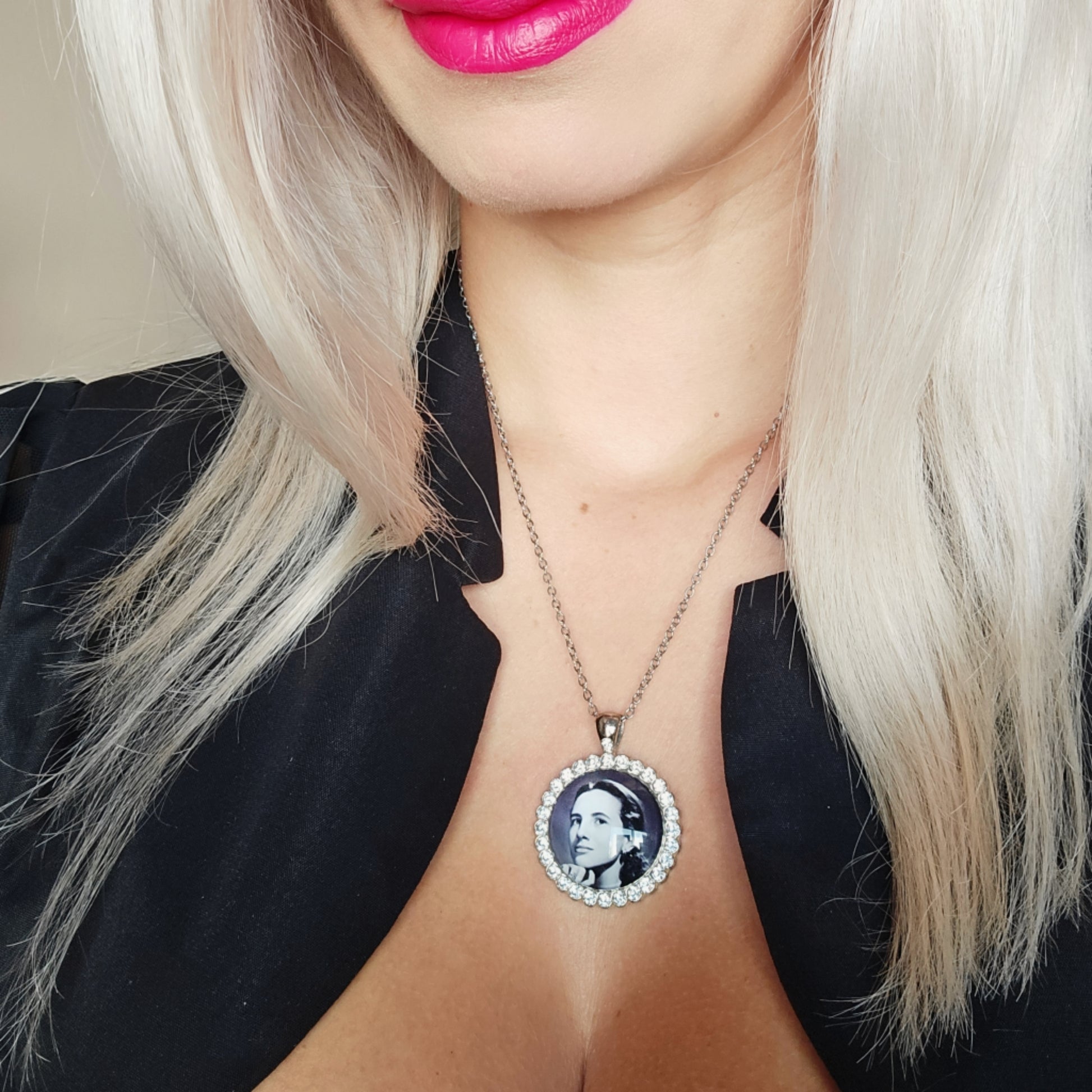 Encapsula tu fotografía especial en un elegante collar con cristales brillantes incrustados, diseñado para resaltar tu recuerdo y llevarlo siempre cerca de ti con un toque de luz y sofisticación.